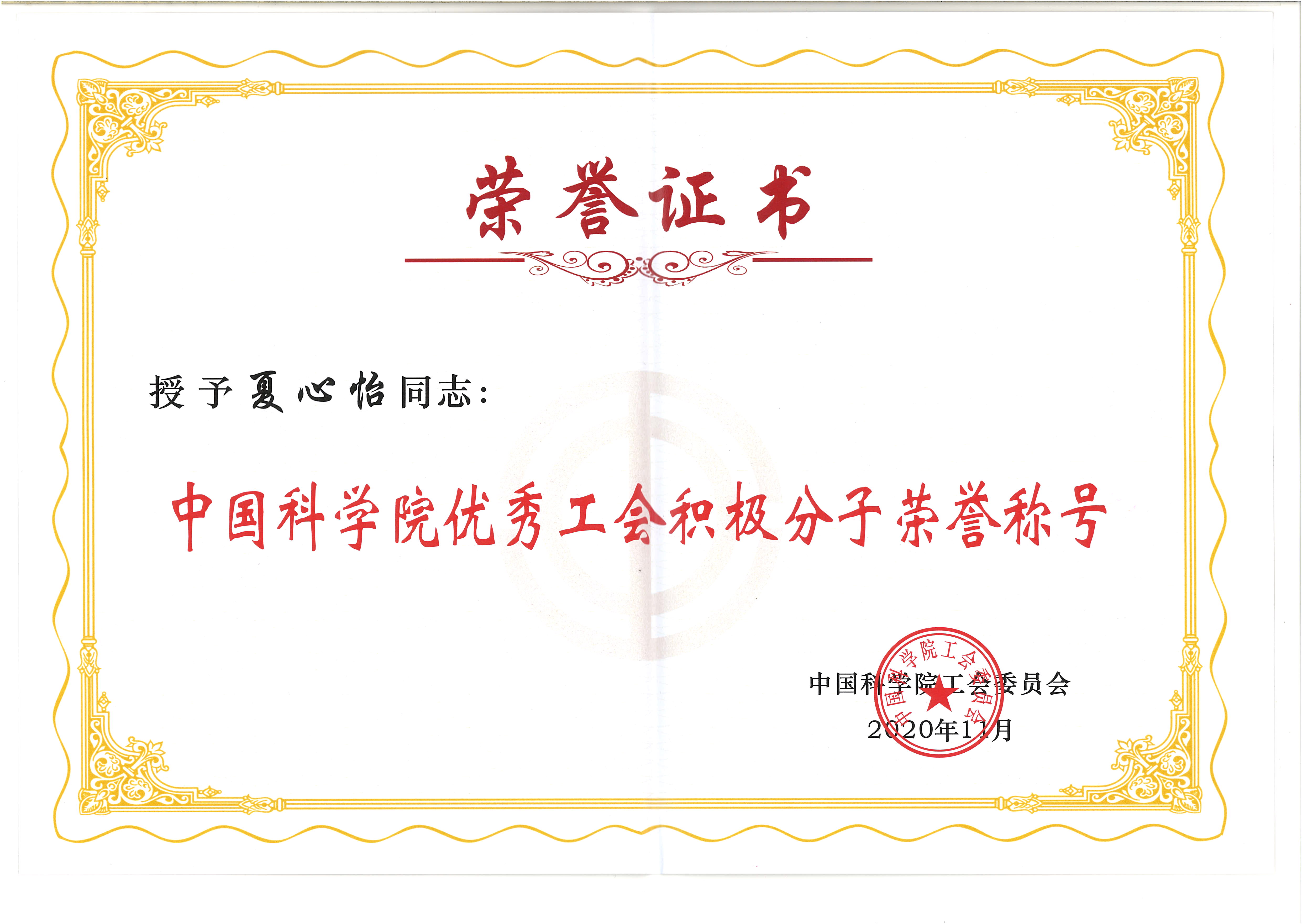 中國科學院廣州地球化學研究所工會委員會獲“中國科學院模范職工之家”榮譽稱號,秦艷、夏心怡獲“中國科學院優秀工會積極分子”榮譽稱號。