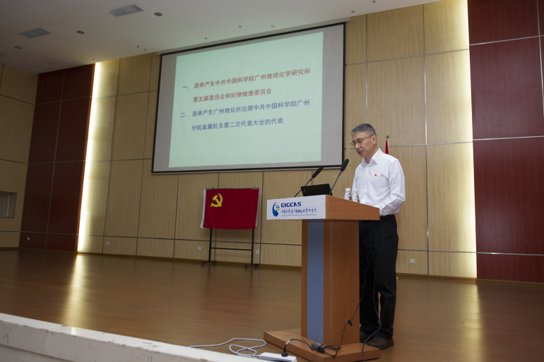 4月28日上午,中國共產黨中國科學院廣州地球化學研究所代表大會在標本樓108會議室隆重舉行,中科院廣州分院分黨組書記、廣州分院直屬機關黨委書記陳廣浩,廣州分院黨群工作處處長郭震到會指導。大會由副所長、黨委委員張海祥主持,上屆黨委委員、紀委委員、全體黨員代表共180人參加會議。