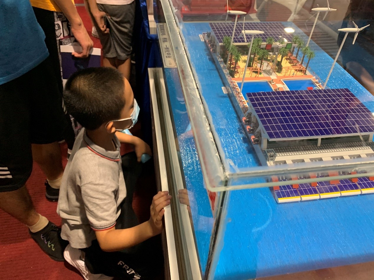 小朋友觀看波浪能發電裝置模型