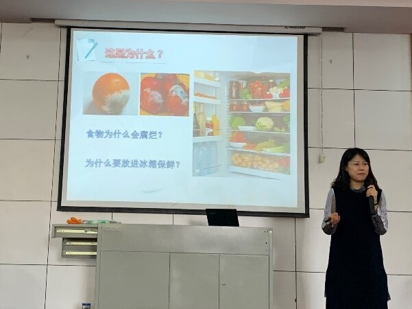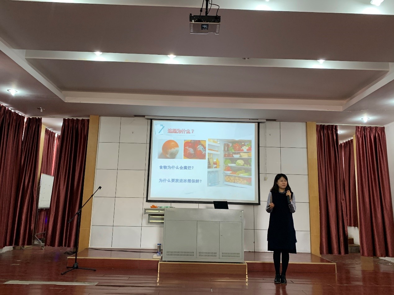活動開始,李穎副研究員在學校禮堂作了題為《微生物——神秘的地球主宰》的科普講座。李穎用生活中常見的食物腐爛問題吸作為開場引出講座主題,用通俗易懂的語言闡述了微生物的相關知識。在聽取了李穎老師生動的講解后,同學們積極提問,現場交流互動氣氛熱烈。