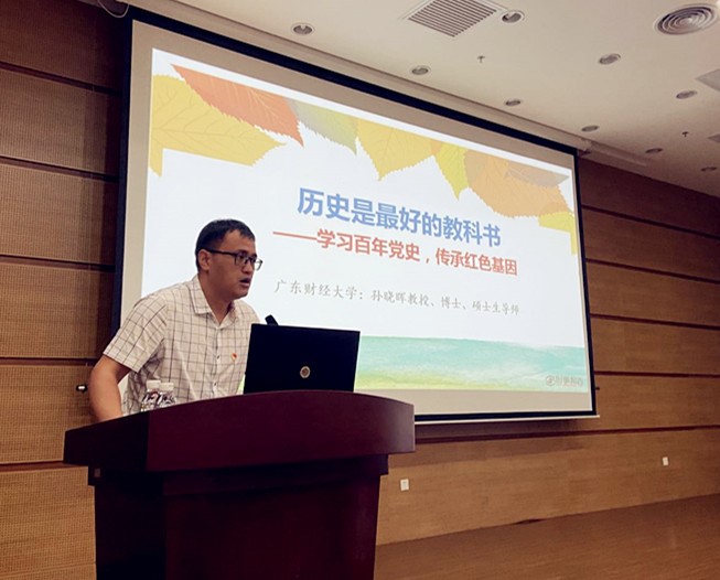 廣東財經大學馬克思主義學院孫曉暉教授受邀作專題輔導報告。孫曉暉以《歷史是最好的教科書——學習百年黨史,傳承紅色基因》為題,從“三個必然要求”著手深刻闡述了黨史學習的重要意義,全面系統、生動形象地論述了“哪里來”“是什么”“怎么做”三個需要每名共產黨員深刻思考的問題。報告獲得參會黨員的廣泛好評,紛紛表示收獲頗豐、感悟頗多,對中國共產黨黨史有了更加深刻的認識和理解,對中國共產黨的偉大成就、光榮傳統和歷史經驗有了更加清晰的認識,更加堅定了以學黨史深化悟思想,以悟思想促進辦實事,以辦實事推動開新局,以黨史學習教育的良好成效慶祝黨的百年華誕。