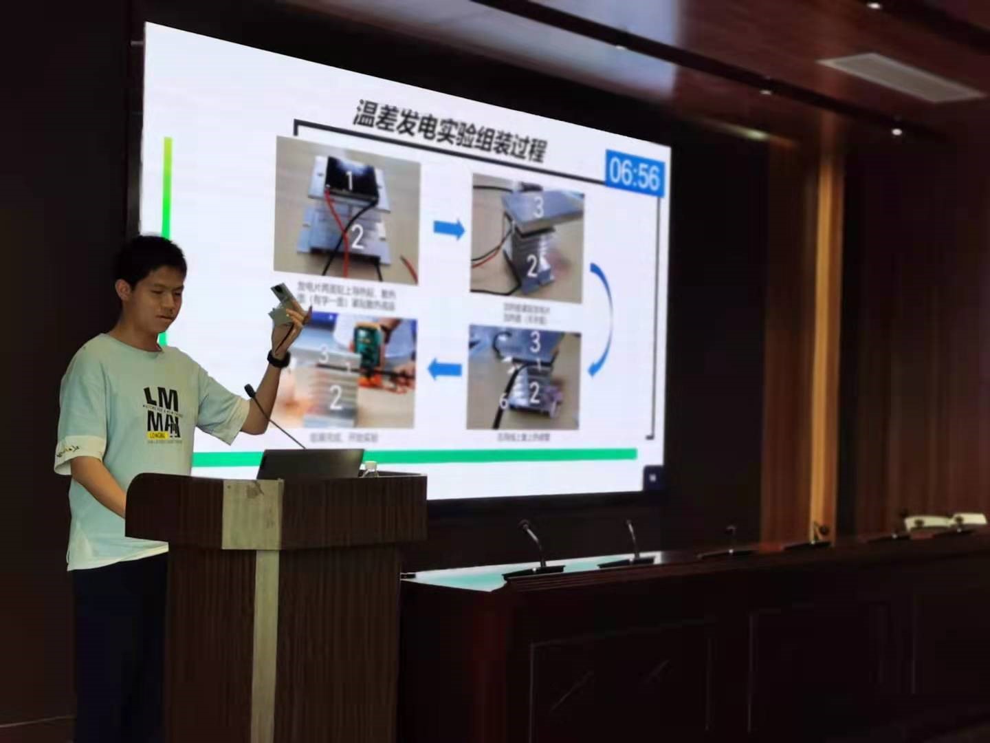 匯報會上,各課題組代表逐一進行了成果匯報,他們的研究方向主要包括生物質能、天然氣水合物、海洋能、地熱能、儲能技術以及能源戰略與低碳發展研究。營員們充分發揮個人特長與聰明才智,采用對口相聲、圖片解說、視頻展示等多種形式完成了匯報。經專家評選,“溫差電轉換效率影響因素的研究”獲得一等獎,“多能互補多功能帆船設計”“楊木水解糖化過程研究”獲得二等獎,“我國能源自給率的空間差異及其影響因素分析”“天然氣水合物地質勘探調研-黃鐵礦對天然氣水合物的指示”“汕頭市碳排放達峰及路徑研究報告”獲得三等獎。