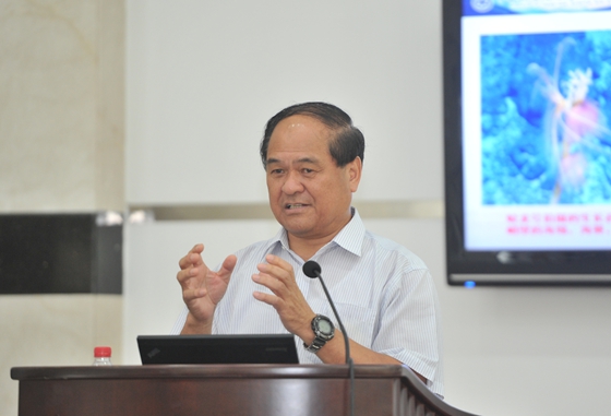 特邀報告環節,深海所首席顧問劉心成高級工程師和廣州生物院研究員賴良學分別作了“中華民族揭秘深淵的偉大壯舉”和“世界首例神經疾病基因敲入豬誕生”的精彩報告。主題討論環節,與會人員圍繞“青年科學家如何發揮優勢投身粵港澳大灣區國際科創中心建設”主題進行小組討論。劉心成在討論中鼓勵大家,科學家是一個受社會尊重的群體,更應該把精力放在研究課題、出成果的事情上。年輕人要擔當大任,耕耘青春,為國家做事光榮!