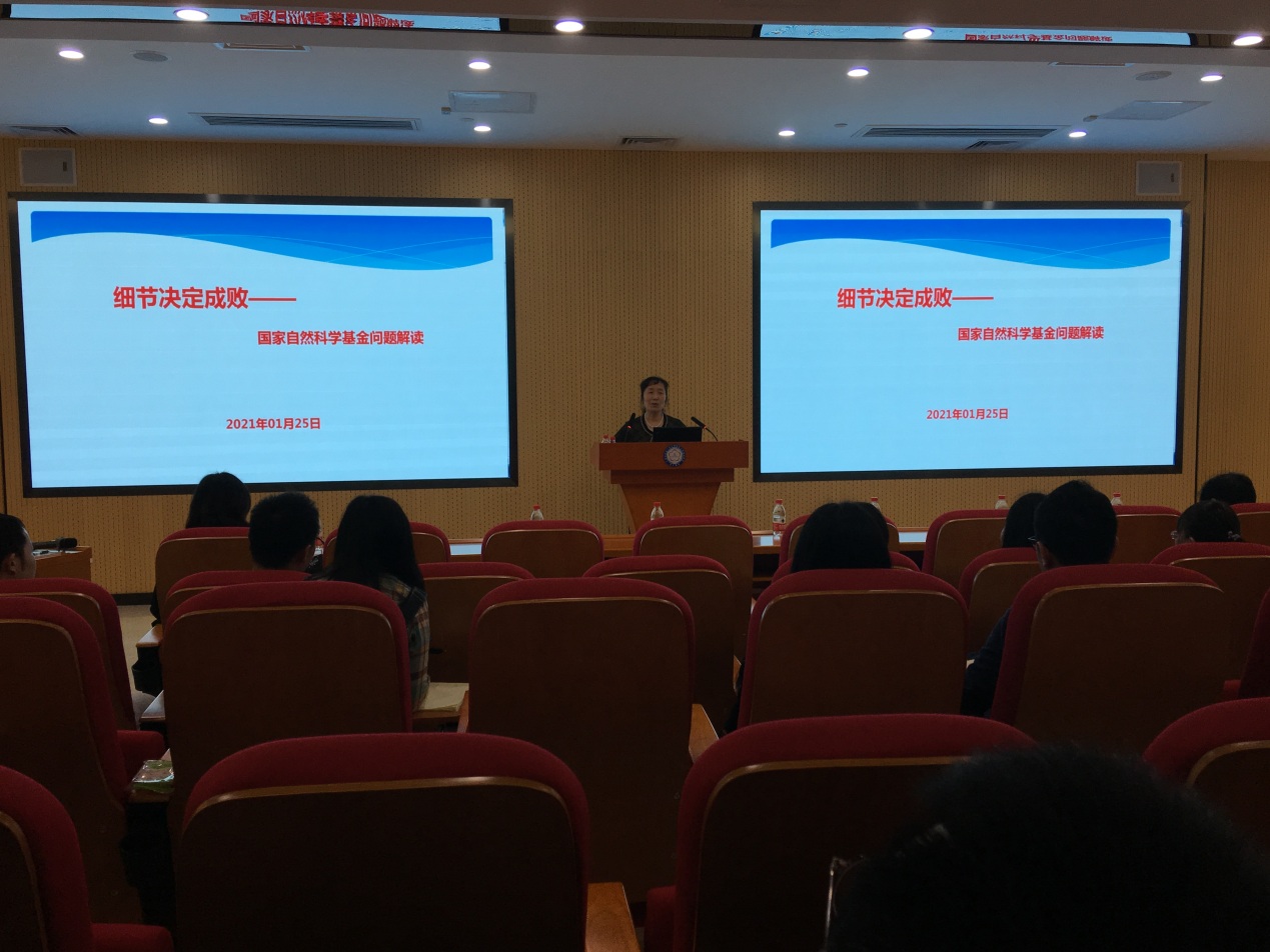 宿老師介紹了國家自然科學基金委的組織架構及評審流程,對2021年國家自然科學基金改革舉措、項目申請指南進行了解讀,還通過具體事例說明申報的注意事項,并對與會人員提出的問題進行了詳細解答。