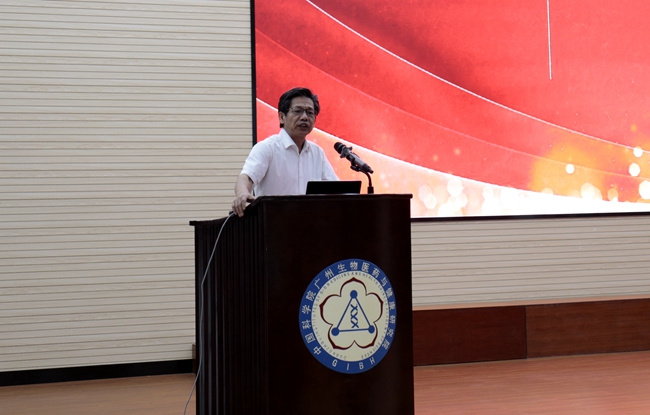 黨委書記、副院長段子淵作了熱情洋溢的致辭。他從中國共產(chǎn)黨成立伊始逐步展開,回顧了黨波瀾壯闊的百年歷程和歷久彌堅的百年初心。闡述了中國共產(chǎn)黨自建黨、建國起始終重視科技工作、尊重知識分子,注重實事求是,注重運用科學技術改造世界并取得累累碩果的歷程。廣州健康院從無到有,從小到大,正是改革開放時期黨領導科技事業(yè)發(fā)展的一個生動體現(xiàn)。要牢記習近平總書記在“七一勛章”頒授儀式上所說的“越是偉大的事業(yè),越是充滿挑戰(zhàn),越需要知重負重”,面對新形勢,廣州健康院要堅持問題導向,把國家需求與科學前沿有機結合,把科學論文寫在原創(chuàng)性發(fā)現(xiàn)和關鍵技術突破中,把科技成果轉化在區(qū)域經(jīng)濟發(fā)展轉型升級的事業(yè)中,把人生理想融入實現(xiàn)中華民族偉大復興的中國夢的奮斗中!用實際行動慶祝中國共產(chǎn)黨百年華誕!