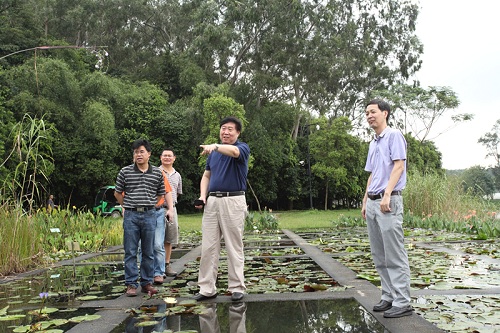 傅伯杰院士等參觀了水生植物園、廣州第一村暨地帶性植被園、姜園、珍稀瀕危植物植物園、蘇鐵園等園區,并在水榭會議室進行了學術交流活動。