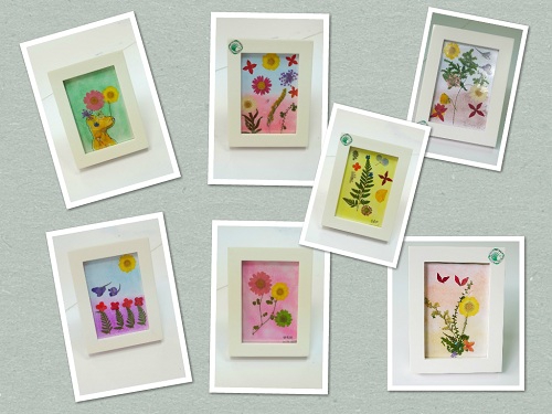 上午是理論知識學習,作為開場暖身,科普老師指導孩子們用五感去發現葉子的秘密,隨后通過圖文并茂的PPT講解,讓孩子和家長們了解植物花和葉的結構、壓花的基本工具和使用、學習采集和處理花材、以及壓花畫創作的技巧等。理論課后,孩子們進行實操學習,學習微波熱壓技術。孩子們親自動手,只需幾分鐘,鮮活的花朵、葉片像變魔法一樣變成了精美干花,這一過程讓孩子們興奮不已。第二課是壓花小畫框創作學習,孩子們利用自己親手壓制的花材,在老師的指導下,根據自己的創意將花朵、葉片等花材擺拼設計成各種造型,然后再和家長一起仔細地粘貼成畫。通過親子間愛的傳遞,每個家庭都完成了一幅獨一無二的精美作品。在分享環節,孩子們交流創作畫作的心得,表達初次進行壓花創作的感受,期待在以后的生活和學習中能創作出更多的大自然作品。
