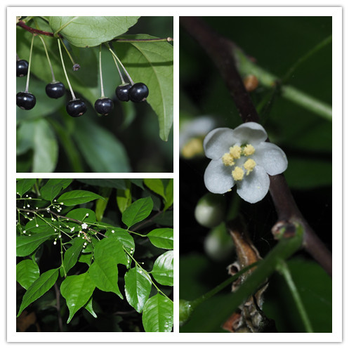 梅葉冬青(崗梅根)Ilex asprella,冬青科多年生落葉灌木;根、葉入藥;味苦、甘,涼。功能:具清熱解毒、生津止渴功效。葉含熊果酸,對心絞痛及冠心病有一定的療效,為涼茶廿四味原料之一。