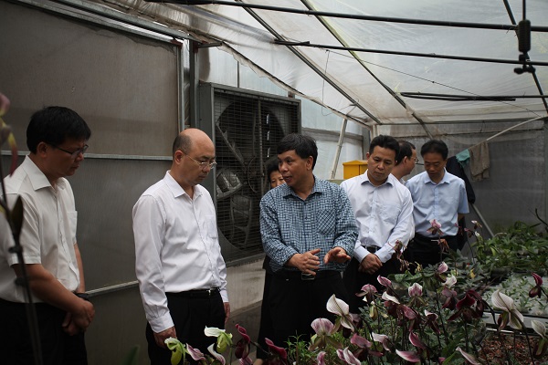 王瑞軍一行首先調(diào)研了正在華南植物園展覽溫室展覽的韶關(guān)蘭花以及蘭園。參觀途中,園主任任海重點介紹了華南植物園近年來在遷地保育國家重點保護植物、經(jīng)濟植物利用、科研成果產(chǎn)業(yè)化以及為地方生態(tài)建設(shè)提供科技支撐等進展情況。隨后考察了珍稀植物繁育實驗基地,聽取曾宋君研究員介紹了兜蘭的種質(zhì)資源開發(fā)利用、新品種培育及產(chǎn)業(yè)化情況。
