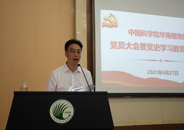 4月27日,中科院華南植物園召開黨史學習教育報告會,350多名中共黨員參加會議。會議由黨委書記/副主任魏平主持。