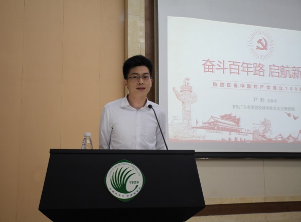 中共廣東省委黨??茖W社會主義教研部副教授尹勝作《奮斗百年路 啟航新征程——熱烈慶祝中國共產黨成立100周年》的專題輔導報告。該報告從學習黨史的意義入手,就黨史學習教育的6方面重點內容進行了深入闡述,解讀了“為什么要在全黨開展黨史學習教育?”,即“為什么要學?”;黨史學習教育的重點內容,即“學什么?”。報告從百年黨史發展脈絡、新民主主義革命、社會主義革命和建設、改革開放和社會主義現代化建設,系統回顧了中國共產黨百年奮斗史,全面解讀了中國共產黨百年光輝歷程中的重要時間節點和重大歷史事件。報告獲得參會黨員廣泛好評,對學習黨史、新中國史、改革開放史、社會主義發展史有重要的啟發。
