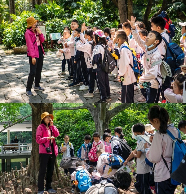 此次研學旨在讓同學們走出課堂,感受自然,通過真切的視、觸、嗅、聽、嘗,學習植物知識,開闊眼界,感受不一樣的學習樂趣。華南植物園資深科普老師、“廣州市十佳科普講解員”帶領同學們漫步園區,觀察和識別不同的植物種類。同學們重點參觀了溫室群景區,從熱帶雨林過渡到戈壁沙漠,再穿越到崇山峻嶺,來自世界各地不同氣候帶的神奇植物,給孩子們帶來了新奇的體驗。同學們徜徉在植物王國里,領略植物的奇妙與美好。