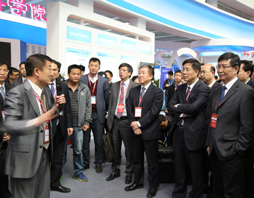 廣東省副省長黃寧生,中國科學院黨組成員、秘書長鄧麥村,科技部原副部長曹健林等領導視察中科院展區