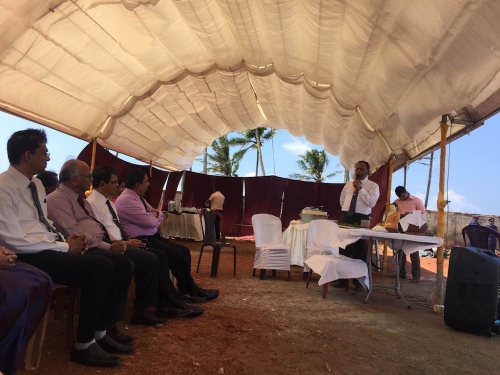 開工儀式遵照斯里蘭卡傳統(tǒng)儀式進(jìn)行,Tilak教授介紹了項(xiàng)目的基本情況,斯里蘭卡法師為項(xiàng)目祈福,觀禮嘉賓埋奠基石,并在奠基石上撒花瓣和水等步驟。