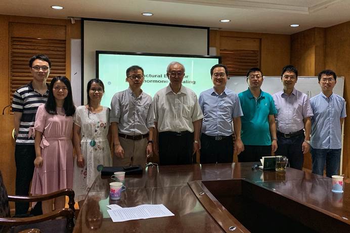 田之倉優(yōu)教授作了題為“Structural Basis for Phytohormone Signaling”的學術報告,介紹了他領導的團隊在植物激素與受體蛋白相互作用方面的研究進展。田之倉優(yōu)首次解析了植物激素脫落酸-脫落酸受體蛋白-磷酸酶三元復合體蛋白晶體結構,揭示油菜素類固醇信號途徑的表達調控機制,闡明受體蛋白對獨腳金內酯的識別原理及配體特異性。報告引起與會人員的興趣,科研人員紛紛與田之倉就蛋白表達、晶體生長、實驗模型選擇等方面的問題展開熱烈探討。