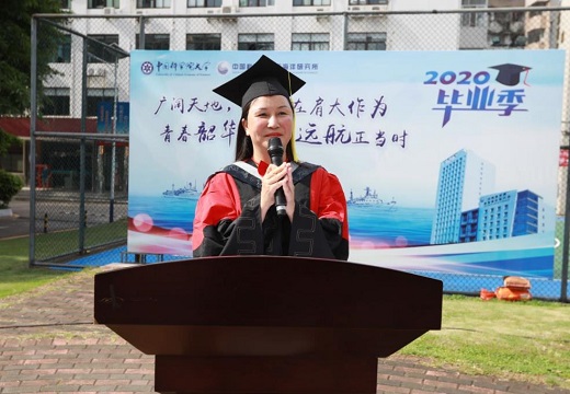 拍攝活動在莊嚴的國歌中拉開序幕。副所長(法定代表人)龍麗娟致辭,向完成學業、即將展開人生新篇章的畢業生表示衷心的祝賀!稱贊今年的畢業生,守責擔當,面對疫情這場大考,經受住了考驗,交出了無愧于時代的精彩答卷!希望同學們走出南海海洋所,不管將來去向何方、從事什么職業,把自己的小我融入到祖國的大我、人民的大我中,與時代同步伐、與人民共命運,勇挑歷時重擔,勤學慎思,腳踏實地,胸懷寬廣,豁達為人,更好地實現人生價值,為實現中國夢貢獻力量!
