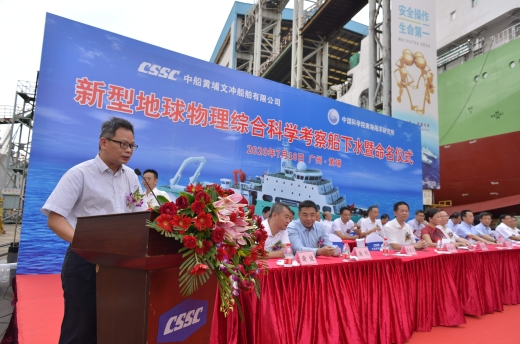 7月18日上午,中國(guó)科學(xué)院南海海洋研究所新型地球物理綜合科學(xué)考察船下水暨命名活動(dòng)在廣州中船黃埔文沖船舶有限公司舉行。中國(guó)科學(xué)院副院長(zhǎng)、黨組成員張濤發(fā)來(lái)賀信。中科院廣州分院院長(zhǎng)吳創(chuàng)之,中船黃埔文沖董事長(zhǎng)盛紀(jì)綱,中國(guó)工程院院士、中科院南海海洋所原所長(zhǎng)、南方海洋科學(xué)與工程廣東省實(shí)驗(yàn)室(廣州)主任張偲,中科院南海海洋所副所長(zhǎng)(法定代表人)龍麗娟,黨委書(shū)記、副所長(zhǎng)詹文歡等出席活動(dòng)。