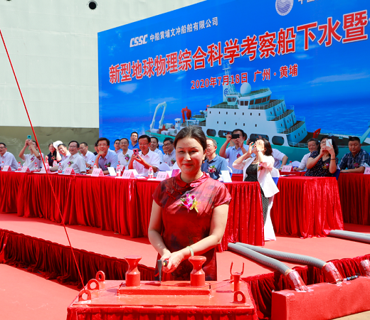 龍麗娟為新型地球物理綜合科學(xué)考察船命名