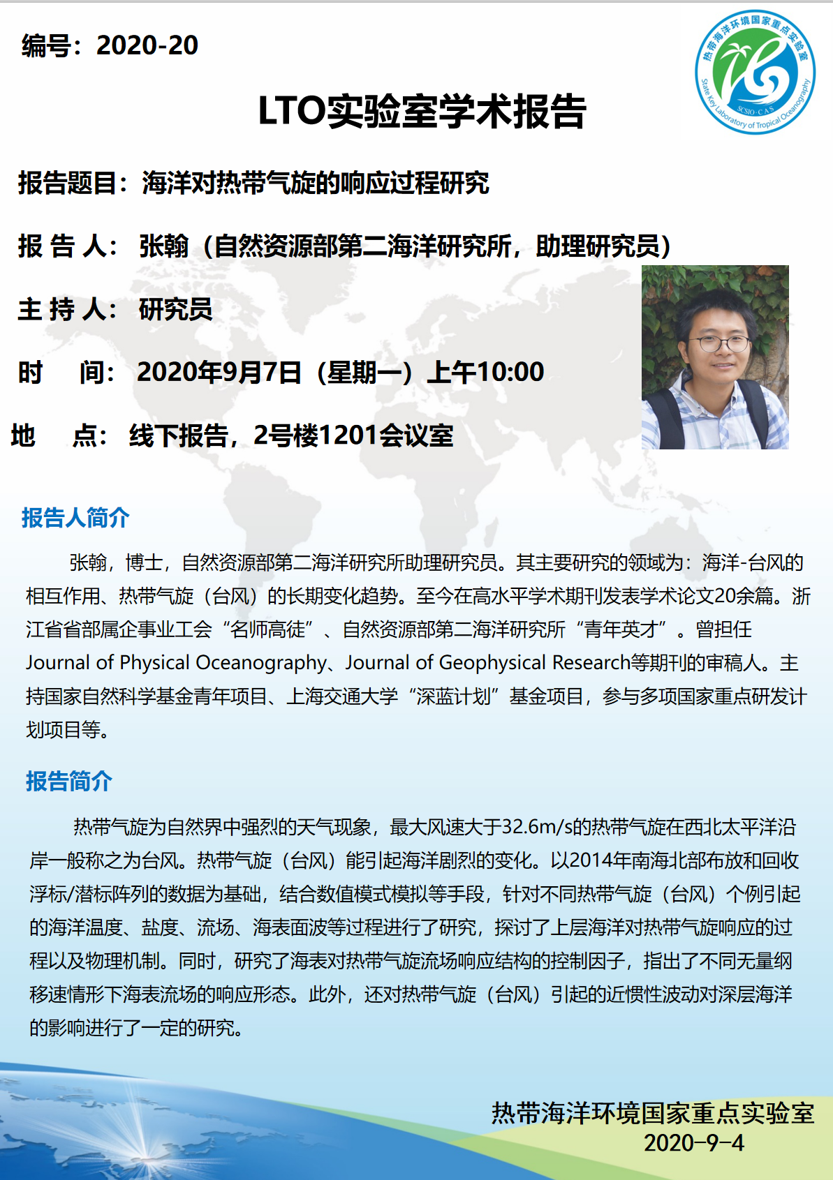 【9月7日LTO學術報告】海洋對熱帶氣旋的響應過程研究