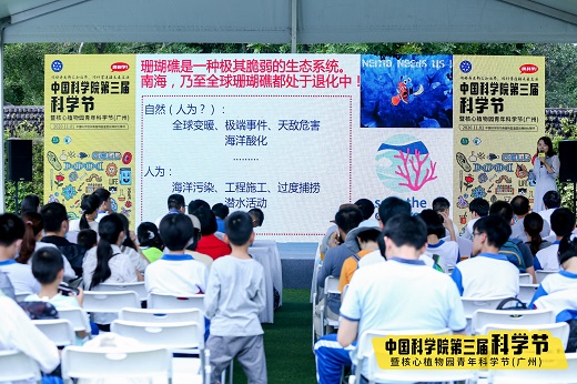 組織開展了來自南海海洋所、地化所、華南植物園、廣州生物醫藥與健康院的4位青年才俊主講的“青年科學節科普報告”。南海海洋所副研究員李淑作“南海瑰寶——珊瑚礁”報告,以通俗易懂的語言帶領觀眾走進了珊瑚礁的世界。