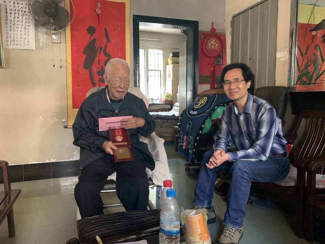 近日,南海海洋所黨委副書記、紀委書記劉民義帶領離退辦工作人員走訪慰問了志愿軍老戰士蔡忠達同志。劉民義將抗美援朝紀念章及慰問金交至蔡老手上,向他表達了南海所黨委對志愿軍老戰士的關心和美好祝愿,對他們保家衛國作出的貢獻表示崇高敬意。