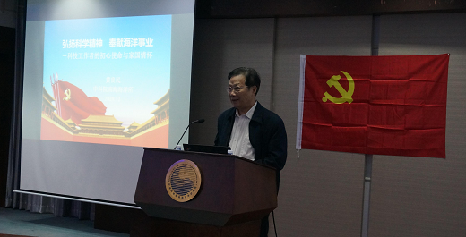 隨后,大家移步標本樓,參觀南海海洋生物標本館,觀看《南海精神·國家使命》主題教育視頻,聆聽南海海洋所原黨委書記黃良民作的《弘揚科學精神 奉獻海洋事業》黨課報告。報告中,黃良民結合珍貴的歷史照片和生動的出海案例帶領大家一同回顧我國海洋科技發展歷程,分享老一輩科學家堅守崗位、堅定信念的感人事跡,勉勵黨務工作者不忘初心,引導科技工作者弘揚科學家精神,堅韌不拔,勇于奉獻,在建設世界科技強國的征程中實現人生理想和價值。
