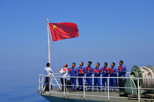 如果信仰有顏色,那一定是中國紅。為了祖國的繁榮昌盛,為了早日實現海洋強國夢,科考船全體人員在這舉國同慶的日子里,在藍天白云下、在浩瀚的大海中,在先進的科考船上,從事科考作業、堅守崗位、始終如一,心始終朝著祖國方向,朝著家的方向。