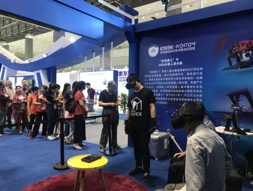 為深入貫徹軍民融合發展戰略,促進軍民融合產業創新發展,中國科學院深海科學與工程研究所應科學技術部的邀請參加此次展會。深海所展出了“探索一號”科考船及其搭載的深海儀器設備模型,以視頻形式向大眾展示了中科院深淵科考隊到馬里亞納海溝挑戰者深淵開展深淵科考的情況,并利用虛擬現實技術(VR)多維解析了我國擁有自主知識產權的載人潛水器“深海勇士”號的結構原理,通過VR場景模擬讓觀眾親身體驗乘坐“深海勇士”號潛入深海進行科考作業的場景。