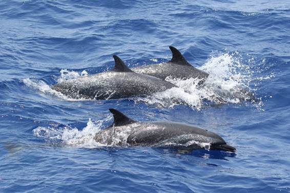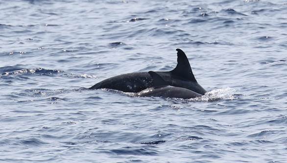 航次采用目視考察手段、截線抽樣方法,在海南島東南海域陸坡區域進行科學考察,以了解該區域深潛和遠海性鯨類物種組成、空間分布和行為特征。考察過程中,科考隊員在南海北部海域發現了大量的鯨類動物,一共目擊到深潛和遠海性鯨類動物27群次,其中可確定的深潛鯨類物種4種,分別為抹香鯨、柯氏喙鯨、短肢領航鯨、花紋鯨(瑞氏海豚);遠海性海豚物種3種,分別為熱帶斑海豚、條紋海豚、弗氏海豚。另有2個物種還有待進一步確定。考察結果顯示,考察海域目前擁有較高的深潛和遠海性鯨類物種多樣性;除熱帶斑海豚外,其它動物群體均是科研人員在考察海域的首次發現和記錄;其中,抹香鯨和喙鯨群體都觀察到母子對,表明南海北部考察海域極有可能存在抹香鯨和喙鯨的定居群體。這些發現填補了南海鯨類尤其是南海深潛鯨類研究的空白。
