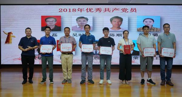 宣誓后,代亮宣讀了2018年度優秀共產黨員、優秀黨務工作者、先進黨支部表彰決定,陽寧、劉心成、蔣磊分別對獲得表彰的17名優秀共產黨員、9名優秀黨務工作者、2個先進黨支部進行了頒獎。