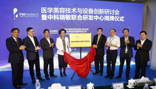 11月30日,中國科學院深圳先進技術研究院(以下簡稱“先進院”)與深圳瑞敏皮膚科醫院聯手成立的醫學美容技術與設備創新研討會暨中科瑞敏聯合研發中心在先進院舉行揭牌儀式。深圳市副市長吳以環,先進院副院長呂建成,先進院副院長、醫工所所長鄭海榮,先進院紀委書記馮偉,深圳瑞敏皮膚科醫院院長范敏出席活動。