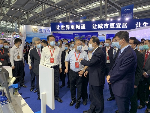 深圳先進院副院長呂建成(前排右三)向自然資源部部長陸昊(前排右二)等領導介紹展品