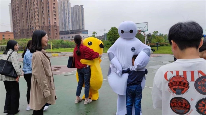 該活動主要分為兩個部分,一部分是通過卡通人物與路過的同學們抱抱從而傳遞溫暖,另一部分是讓同學們將不安、煩惱、祝福等寫在紙條上投進星愿瓶,使同學們的情緒得到釋放。活動現場十分熱鬧,在卡通人物的吸引下,眾多同學參與進來,與卡通人物擁抱合影,釋放情緒,感受溫暖。此活動讓歡聲笑語傳遞到園區的每一個角落,更是傳遞了“愛自己,愛他人”的理念。