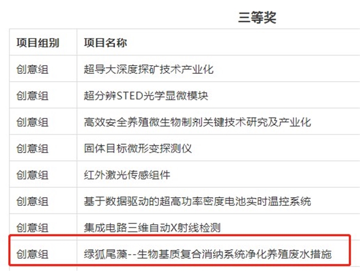 10月18日,中國(guó)科學(xué)院大學(xué)公布了2021年“國(guó)科大杯”創(chuàng)新創(chuàng)業(yè)大賽分項(xiàng)賽決賽結(jié)果。亞熱帶農(nóng)業(yè)生態(tài)研究所選派的“綠狐尾藻--生物基質(zhì)復(fù)合消納系統(tǒng)凈化養(yǎng)殖廢水措施”項(xiàng)目榮獲2021年“國(guó)科大杯”創(chuàng)新創(chuàng)業(yè)大賽決賽創(chuàng)意組三等獎(jiǎng)。