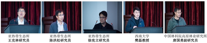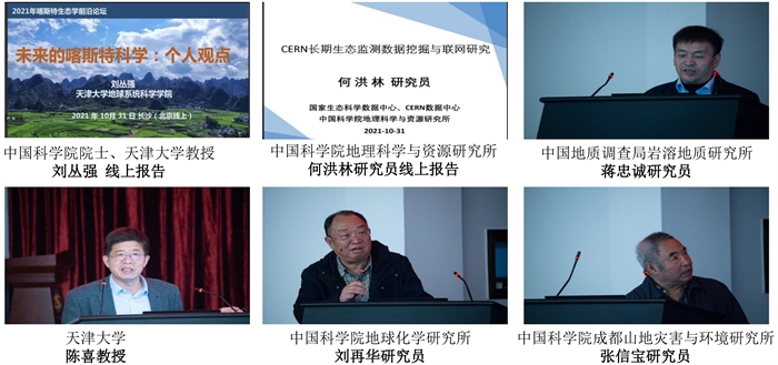 在“喀斯特生態學前沿論壇”上,中國科學院院士、天津大學教授劉叢強,中國科學院地理科學與資源研究所何洪林研究員,中國地質調查局巖溶地質研究所蔣忠誠研究員,天津大學陳喜教授,中國科學院地球化學研究所劉再華研究員,中國科學院成都山地災害與環境研究所張信寶研究員分別作了題為“未來的喀斯特科學:個人觀點”、“CERN長期生態監測數據挖掘與聯網研究”、“喀斯特生態系統觀測研究及固碳增匯”、“喀斯特地球關鍵帶生態水文觀測、模擬與預測”、“巖溶地表水體碳增匯和富營養化緩解雙贏的DIC施肥論”和“巖溶高原區石漠化分區框架”的特邀報告。亞熱帶生態所王克林研究員、陳洪松研究員、徐憲立研究員、西南大學樊磊教授、中國林科院高原林業研究所唐國勇副研究員圍繞喀斯特生態服務功能和關鍵帶水文過程與生物地球化學循環分別作了題為“社會-生態視角下西南喀斯特景觀變化的生態服務響應”、“喀斯特關鍵帶水文過程及植物水分適應機制”、“喀斯特關鍵帶生態水文學淺思”、“基于LVOD的中國森林碳匯動態監測研究”和“非對稱升溫對喀斯特土壤有機碳穩定和無機來源CO2釋放的影響”的學術報告。